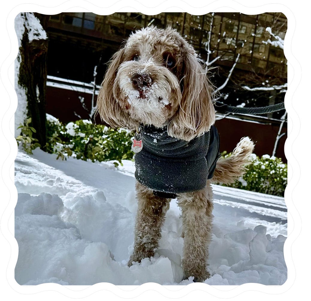 Strudel loves to bunny-hop through the snow, but this post-blizzard mini-mountain got the better of her!
